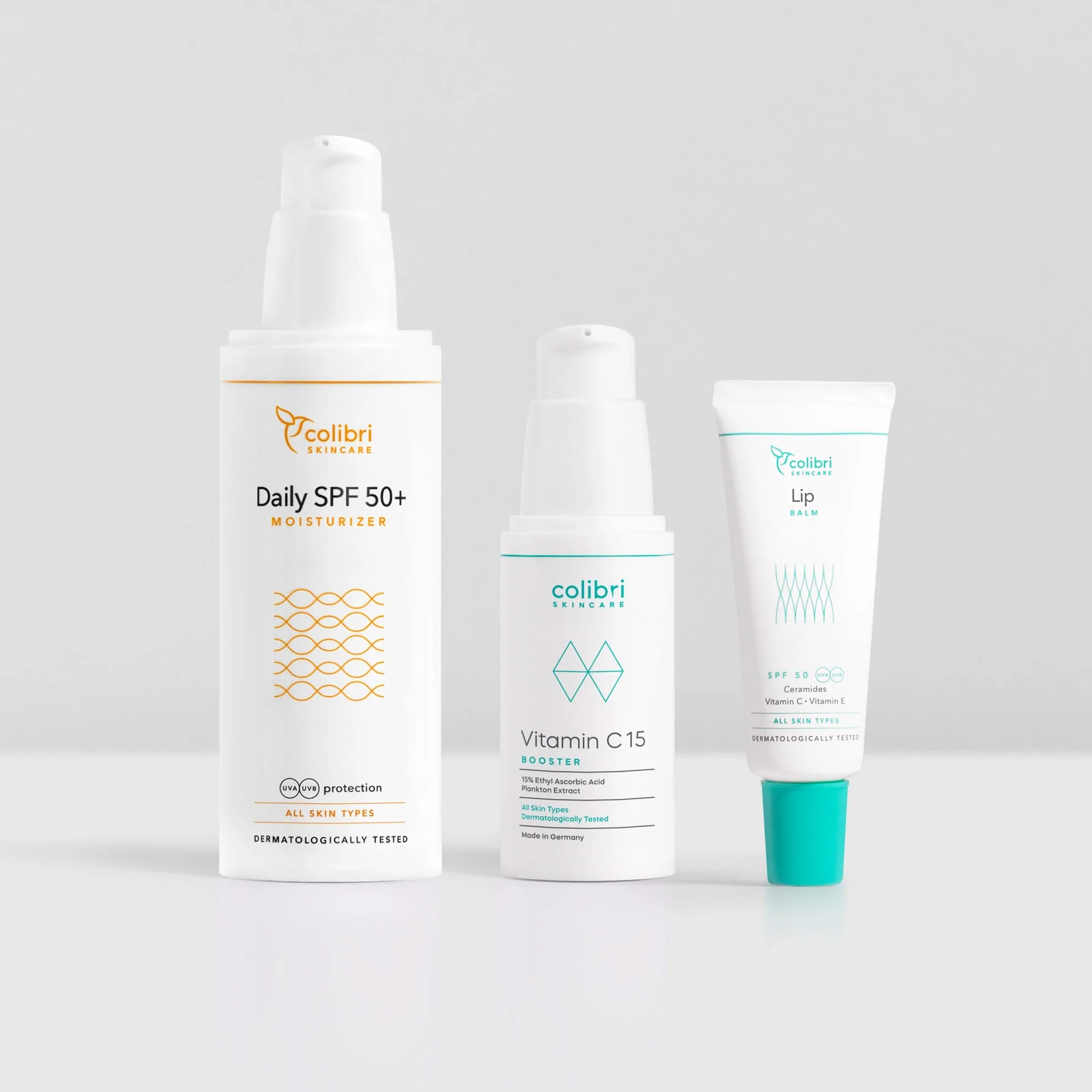 Verstärke Deinen Schutz vor den Auswirkungen der Sonneneinstrahlung, indem Du den Vitamin C Booster, den Daily SPF 50+ Moisturizer und den Lip Balm in Deiner täglichen Pflegeroutine kombinierst. Das ultimative Power-Trio für den täglichen Schutz Deiner Haut vor vorzeitiger Hautalterung.